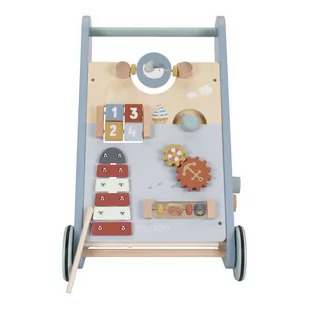 Drewniany chodzik edukacyjny Sailors Bay FSC od Little Dutch. Solidna konstrukcja sprawia, że chodzik doskonale nadaje się do nauki chodzenia dla dzieci od 12 miesiąca, które gotowe są do stawiania pierwszych kroków. Drewniany wózek-chodzik oferuje mnóstwo ciekawych zabaw, które wspierają rozwój oraz umiejętności motoryczne dzieci. Znajdziemy tu lusterko, które maluchy uwielbiają, przeplatankę do ćwiczenia małych rączek, liczydło, kołatkę i wiele innych świetnych zabaw z motywem kolekcji Sailors Bay. Z tyłu chodzika znajdziemy miejsce na skarby dziecka, klocki czy zabawki, które może swobodnie przewozić.
