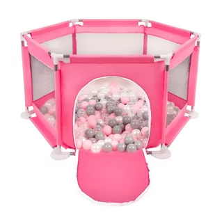 Składany sześciokątny kojec z plastikowymi piłkami zapewni Twojemu dziecku godziny zabawy. Bezpieczna, zamknięta przestrzeń pozwala małym dzieciom na swobodną zabawę. Jednocześnie kojec można w łatwy sposób złożyć, dzięki czemu można go schować, lub zabrać ze sobą na wczasy, piknik, czy do znajomych. Jedna ze ścianek jest wyposażona w siatkowy kosz do koszykówki umożliwiając małym dzieciom rywalizację w grze zespołowej. WŁAŚCIWOŚCI - stabilna konstrukcja z aluminiowymi rurkami umożliwia łatwo go złożyć i rozłożyć - kojec wyposażony w boczne wejście z zamkiem błyskawicznym ułatwiające małym dzieciom wejście i wyjście - boczne ścianki wykonane z siatki umożliwiają obserwację dzieci podczas zabawy, ortalion o wysokiej gramaturze jest wytrzymały i nie strzępi się - zamknięta konstrukcja utrzymuje piłeczki wewnątrz pomagając zachować porządek w pomieszczeniu lub na zewnątrz - delikatne kolory materiału i mnóstwo kombinacji piłek pozwalają dobrać odpowiedni wariant dla Twojego malucha lub dostosować kojec do każdego wnętrza - wyprodukowany z bezpiecznych, nietoksycznych materiałów - gładka powierzchnia, łatwa do utrzymania w czystości SKŁAD: