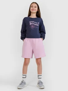 Spodenki dresowe dziewczęce idealnie sprawdzą się jako element zarówno casualowych, jak i sportowych stylizacji na co dzień. Posiadają krój regular, który wygodnie dopasowuje się do sylwetki oraz krótkie nogawki do połowy uda. Dziecięce spodenki dresowe są wykonane w 80% z bawełny, dzięki czemu są miękkie, trwałe i przyjemne w dotyku. Dodatek poliestru (20%) sprawia, że materiał utrzymuje fason i jest odporny na zużycie nawet przez wiele sezonów. Dzianina dresowa french terry z jednej strony jest gładka, natomiast z drugiej posiada widoczny splot w postaci pętelki.
