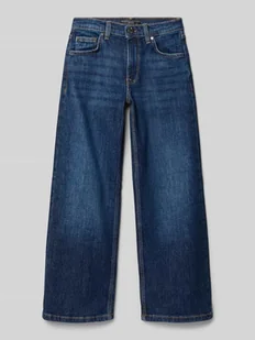 Jeansy dziecięce Guess;Mieszanka bawełny z dodatkiem streczu;Niski stan;Efekt znoszenia;Wpuszczane kieszenie;Szerokość w pasie w rozmiarze 140: 31 cm;Długość wewnętrzna nogawki w rozmiarze 140: 64 cm
