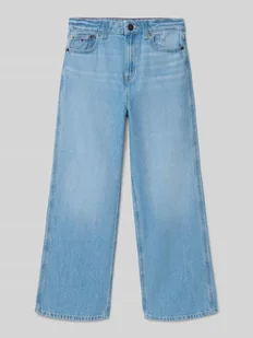 Jeansy z szeroką nogawką dziecięce Tommy Hilfiger Teens;Efekt: jednolity kolor;Krój: Długa nogawka;Aplikacja: Naszywka z logo, wyhaftowane logo, detal z logo;Detale: Szlufki;Zapięcie: