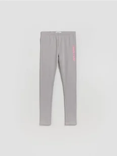 Reserved - Bawełniane legginsy z nadrukiem - jasnoszary