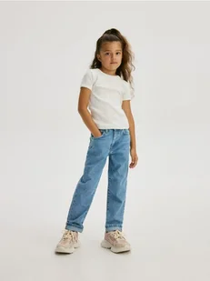 Jeansy typu straight, uszyte z bawełnianej tkaniny.