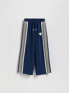 Reserved - Dresowe spodnie z lampasem - granatowy