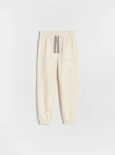 Spodnie o luźnym kroju, wykonane z dzianiny z bawełną.