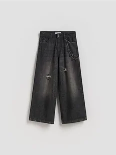 Reserved - Jeansy super wide leg z breloczkiem - czarny