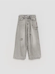 Reserved - Jeansy super wide leg z breloczkiem - jasnoszary