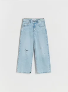 Reserved - Jeansy super wide leg z przetarciami - niebieski