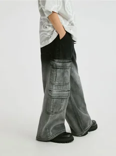 Reserved - Jeansy wide leg z efektem ombre - czarny