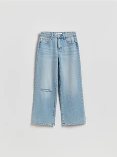 Reserved - Jeansy wide leg z przetarciem - niebieski