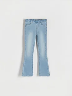 Spodnie typu flare, wykonane z tkaniny z bawełną.