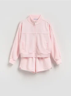 Komplet składający się z bluzy i szortów, wykonany z dzianiny z modalem.