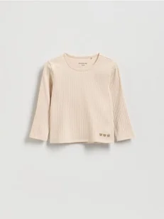 Reserved - Prążkowana koszulka - kremowy
