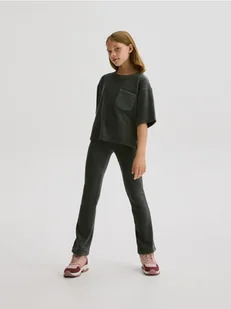 Reserved - Prążkowane spodnie flare - ciemnoszary