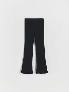 Spodnie o kroju flare, wykonane z dzianiny z wiskozą.