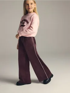Reserved - Welurowe spodnie z szerokimi nogawkami - bordowy