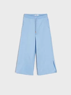 Sinsay - Spodnie - niebieski - elastyczny pas z gumką i sznurkiem do regulacji,szerokie nogawki z rozcięciami na dole,2 przednie kieszenie