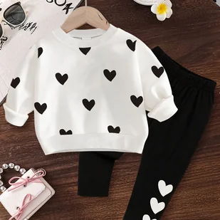 TEMU Zestaw dla niemowląt 2 szt. Dziewczynka, codzienna koszulka z długim rękawem i długie spodnie, wiosna, jesień, , dziewczynka, bluzka z nadrukiem