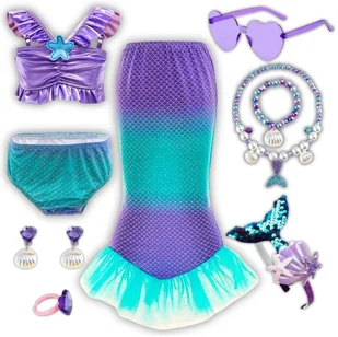 9W1 SYRENI OGON STRÓJ KĄPIELOWY SYRENKA ARIEL OKULARY OPASKA 140 / 146 CM (z metki 140) OGON SYRENY ✨OPIS PRODUKTU: Kostium kąpielowy składa się z 9 części: ...