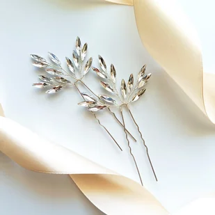 Srebrny komplet efektownych wsuwek do włosów na ślub Umiejętnie dobrana ozdoba do włosów tworzy spójną całość i podkreśla elegancję ślubnej stylizacji. Ten b...