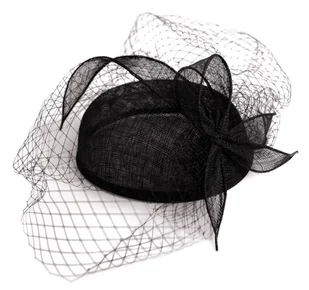 Fascynator Toczek Z Woalką Kokardą Lniany Weselny Elegancki Stylowy Na Ślub