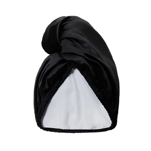 Dwustronny turban do włosów. Z jednej strony posiada cienką mikrofibrę, która absorbuje wodę z włosów bez ich uszkadzania. Z drugiej zastosowano wegańską satynę wygładzającą włosy i nadającą im miękkości. Elegancki turban skraca czas suszenia nawet o połowę. Elastyczna kieszeń z gumką mieści wszystkie rodzaje i długości włosów.