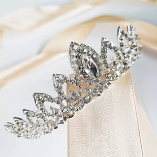 DIADEM srebrny na ślub Panieński wesele błyszczący Tiara ślubna z cyrkoniami w kolorze srebrnym zwieńczy nie tylko eleganckie ślubne stylizacje, ale i założy ją przyszła Panna Młoda na swój wieczór Panieński. Połyskujące cyrkonie przemycą czarujący blask. Wymiary: Długość ozdoby: 30,00 cm Szerokość maksymalna: 3,50 cm Na długości 20,00 cm tiara wysadzana jest cyrkoniami w eleganckim wzorze.