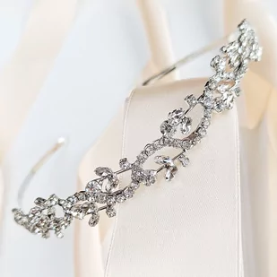 SREBRNA opaska ślubna na włosy do fryzury ozdobna PANIEŃSKI impreza Srebrna opaska z listkami z cyrkonii będzie odpowiednia do stylizacji wieczorowych i ślub...