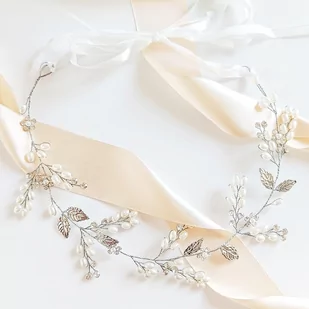 Wianek z perełkami na komunię ŚLUB boho glam z perelkami i listkami srebrny Srebrny biżuteryjny wianek z listkami i perełkami to wybór Panien Młodych posiada...