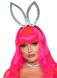 Leg Avenue 2767 02722 Opaska na głowę z uszami królika i choker kostiumy dla dorosłych, srebrny, jeden rozmiar