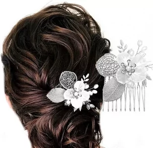 Grzebyk na ślub elegancka ozdoba do włosów, z perłami, kwiat , cyrkonie ✅ Długość ozdoby : 8 cm x 8 cm ✅ Wysoka jakość wykonania ✅ Grzebyk jest w kolorze sre...