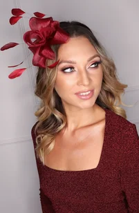 MARENA bordo fascynator z piórkami duży kwiat