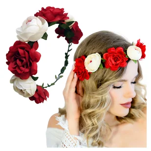 ✨ Wymiary: Obwód uniwersalny 55 cm ✨ Kolor: Czerwony Biały Z zielonimi liśćmi ✨ Materiał: Kwiaty z materiału Opaska na druciku Wstążka do wiązania ✨ Ilość sztuk: 1 sztuka