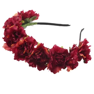 Obwód uniwersalny Wielkość kwiatka - około 5 cm ✨ Kolor: Bordowy ✨ Materiał: Kwiaty z materiału Opaska z tworzywa ✨ Ilość sztuk: 1 sztuka Modelka prezentuje ten sam model wianka w innym kolorze - również dostępny w naszej ofercie.