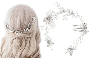 OZDOBA ŚLUBNA do włosów damska PEREŁKI cyrkonie ślub GRZEBYK