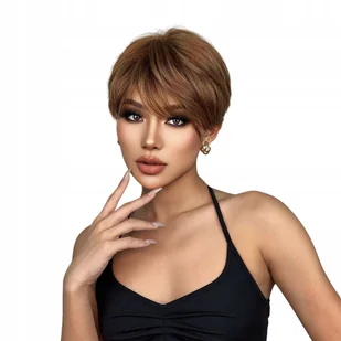 Peruka krótka jasny brąz pixie włosy na co dzień jak naturalne