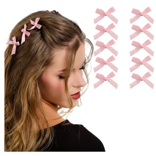 Spinka do Włosów 10 SZTUK Różowe Małe Kokardki Satynowe Wstążki Połysk // Spinka do włosów ZESTAW 10 sztuk małe KOKARDKI różowe wstążki SATYNOWE ✨ Najważniejsze cechy: ✔ Zestaw 10 różowych spinek ✔ Z ozdobnymi kokardkami ✔ Stylowy i elegancki dodatek ✔ Z satynowej tkaniny Zestaw 10 małych różowych spinek z satynowymi kokardkami to uroczy komplet, który świetnie sprawdzi się zarówno na co dzień, jak i podczas wyjątkowych okazji. Każda kokardka została starannie wykonana z gładkiej, połyskującej tasiemki, dzięki czemu prezentuje się elegancko. Spinki są lekkie, łatwe w użyciu i doskonale trzymają się włosów, zapewniając komfort noszenia. To idealny wybór do dziecięcych fryzur, stylizacji świątecznych lub jako subtelny, dziewczęcy akcent dla dorosłych.