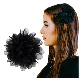 Spinka do Włosów Czarna Duża Kwiat Bezpieczna Wsuwka Lekka i Efektowna ✨ Najważniejsze cechy: ✔ Duża, czarna spinka ✔ W kształcie kwiatka ✔ Wykonane z szyfonu ✔ Wytrzymałe i bezpieczne dla włosów Dodaj swojej stylizacji romantycznego uroku dzięki dużej spince w kształcie kwiatka. Wykonana z lekkiego, szyfonowego materiału, pięknie układa się na włosach, nadając fryzurze lekkości i subtelnej elegancji. Dzięki solidnemu zapięciu dobrze trzyma pasma, nie ciągnąc ani nie niszcząc włosów. To idealny dodatek do codziennych upięć i wyjątkowych okazji – kobiecy, stylowy i niezwykle efektowny! ✨ Wymiary: