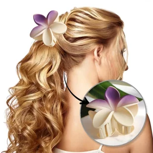 Spinka do włosów klamra XL kwiat OMBRE matowy kremowy z fioletem 7,5 x 8cm SP402