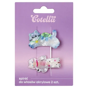 Opis Cotella to marka, która łączy codzienny relaks z odrobiną uroku. Jej akcesoria – od miękkich opasek na oczy, przez żelowe płatki, po spinki i gumki do włosów – dodają każdemu dniu odrobinę błysku. Delikatne detale i przyjazny design sprawiają, że codzienność staje się wyjątkowa. Cotella, Spinki do włosów, Shiny Kittens, 2 szt. Błyszczący duet, który doda uroku każdej fryzurze! Zestaw Cotella Shiny Kittens to dwie urocze spinki typu „krokodylek”, wykonane z wysokiej jakości akrylu o perłowym połysku.