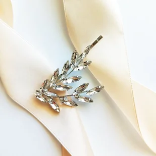 Srebrna wsuwka do włosów z błyszczącymi listkami Szukasz srebrnej wsuwki ozdobionej błyszczącymi listkami? Właśnie na nią patrzysz. Ta ozdoba idealnie dopełn...
