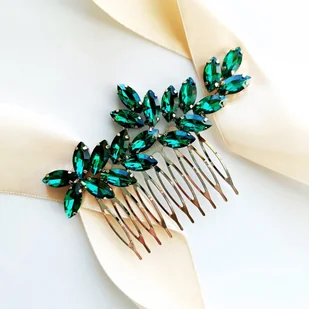 Grzebyk srebrny zielony z cyrkoniami elegancki Ozdobny srebrny grzebień z motywem zielonych cyrkoniowych listków dzięki swojej uniwersalności będzie odpowied...