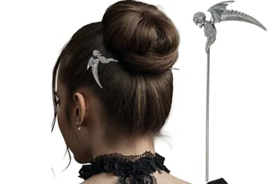 Szpilka do włosów Kosa 16 cm Halloween Srebrny Szpikulec do Włosów z Motywem Kościotrupa – Mroczny Akcent do Stylizacji Podkreśl swój wyjątkowy styl dzięki s...