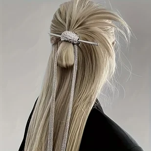 TEMU 1 szt. Bardzo długa spinka do włosów z frędzlem, srebrny elegancki dodatek do włosów dla kobiet, stylowy i unikalny ozdobnik do włosów
