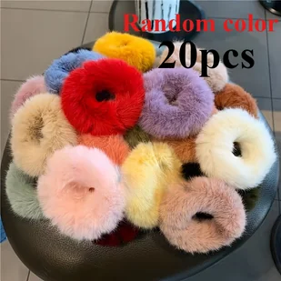 TEMU 20 szt. Miękkie Opaski do Włosów z Sztucznego Króliczego dla Kobiet – Pastelowe i Jasne Kolory (Różowy, Niebieski, Żółty, Czerwony, Fioletowy,