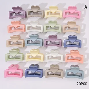 TEMU 20szt./10szt. Pastelowe Spinki do Włosów dla Kobiet - Uroczy Prostokątny Design z Wyciętym Sercem, Średnie Plastikowe Akcesoria do Włosów z
