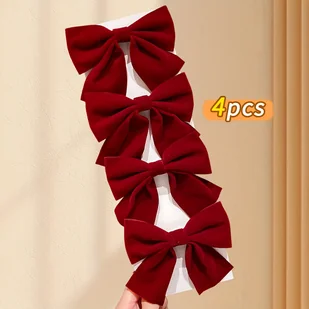 TEMU 4 Eleganckie Czerwone Spinki do Włosów z Kokardą na Boże Narodzenie dla Kobiet