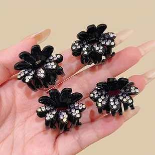 TEMU 4 szt. Eleganckie spinki do włosów z kwiatami i cyrkoniami | Słodkie i eleganckie, idealne na imprezy i prezenty urodzinowe, materiał: plastik