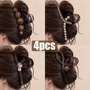 TEMU 4 szt. Zaawansowane spinki do włosów w kolorze kawy dla kobiet 2025, spinka do włosów, duża objętość włosów z tyłu głowy, wielowarstwowe włosy,