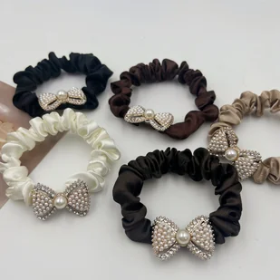 TEMU 5 szt. Gumki do Włosów z Cyrkoniami i Kokardkami - Elastyczne Bezuszkodzeniowe Opaski, Perły Sztuczne & Ozdoby, 5 Kolorów (Brązowy, Ciemny Brąz,